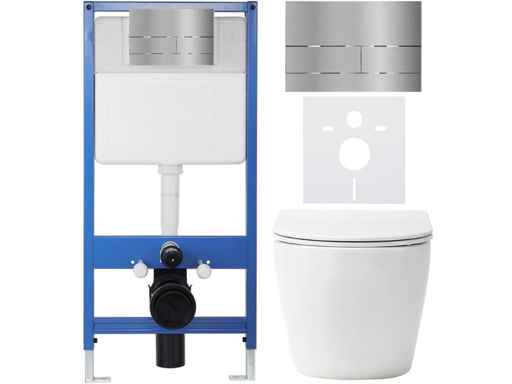 CERANO - Kompletní podomítkový WC set Lite/Verde - bílá lesklá - WC tlačítko Line, nerez - předstěnová instalace - 49x36 cm