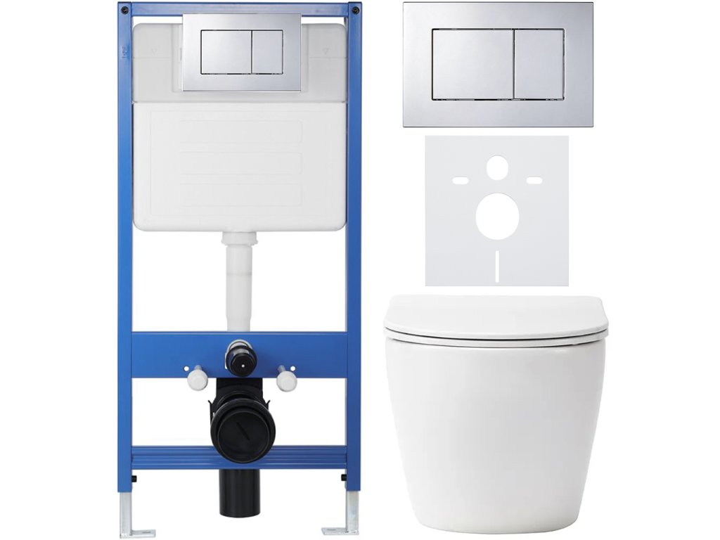 CERANO - Kompletní podomítkový WC set Lite/Verde - bílá matná - WC tlačítko Classic, chrom - předstěnová instalace/sádrokarton - 49x36 cm