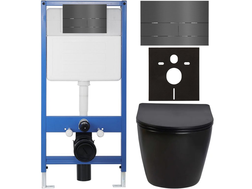 CERANO - Kompletní podomítkový WC set Lite/Verde - černá lesklá - WC tlačítko Line, tmavě šedá - předstěnová instalace - 49x36 cm