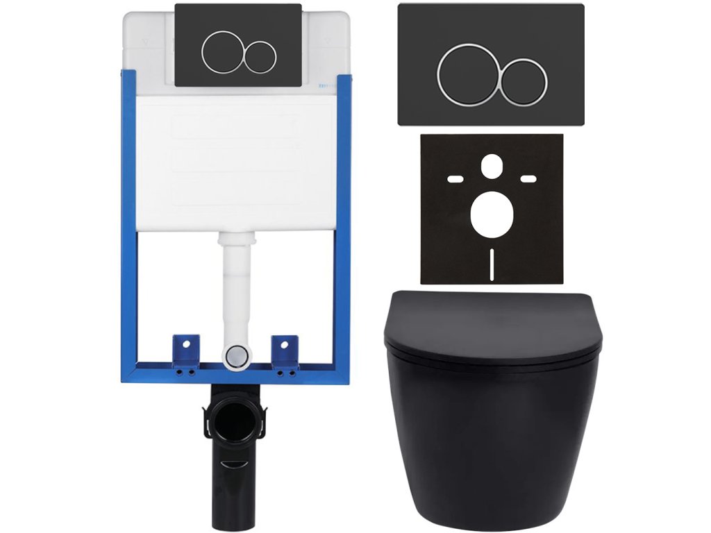 CERANO - Kompletní podomítkový WC set Lite/Verde - černá matná - WC tlačítko Duo, černá matná - k zazdění - 49x36 cm