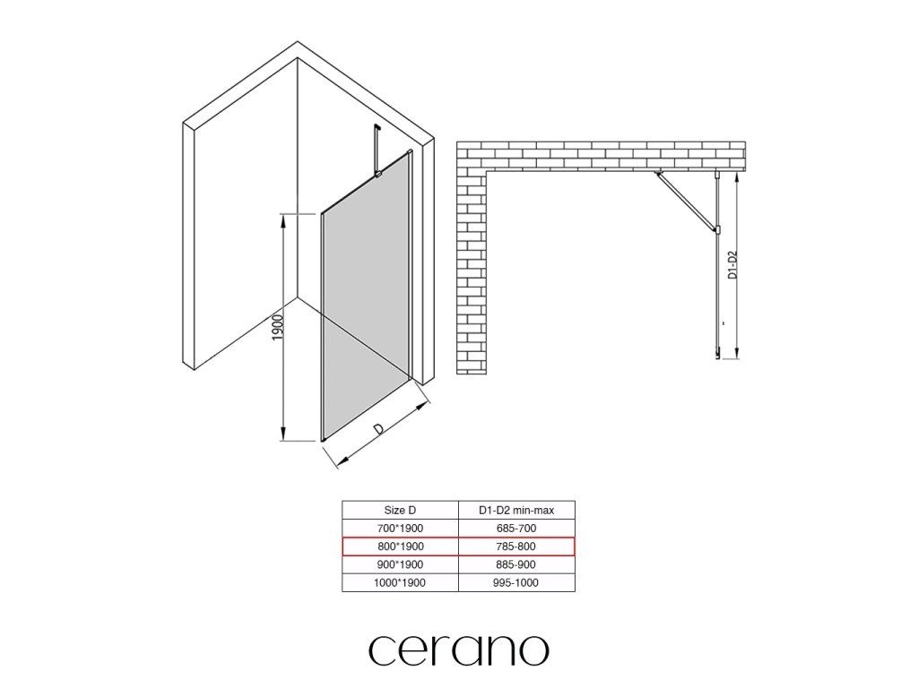 CERANO - Boční stěna Marino a Volpe L/P - 6 mm - chrom, transparentní sklo - 80x190 cm