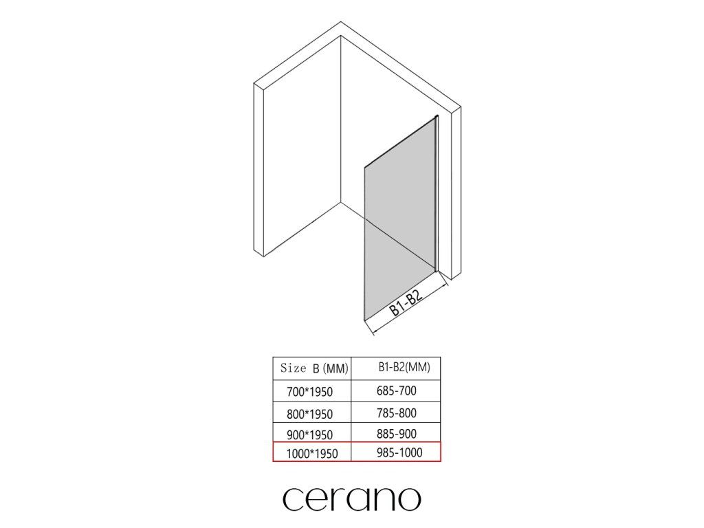 CERANO - Boční stěna Orlano L/P - 5 mm - černá matná, transparentní sklo - 100x195 cm