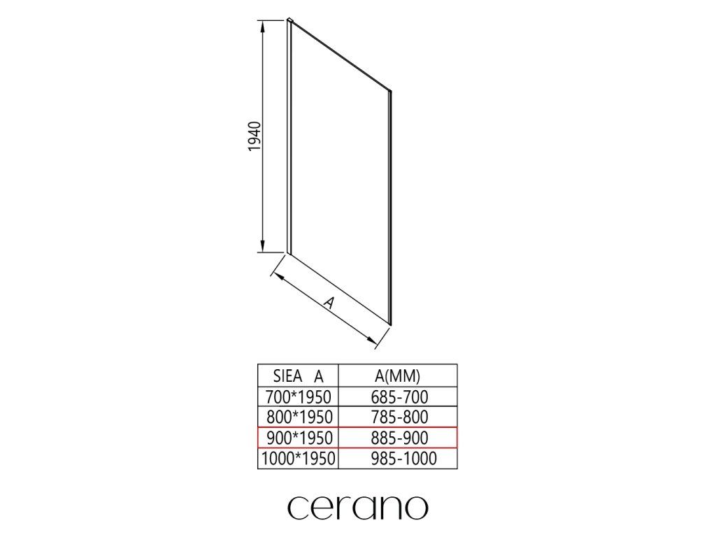 CERANO - Boční stěna Porte L/P - 8 mm - chrom, transparentní sklo - 90x195 cm