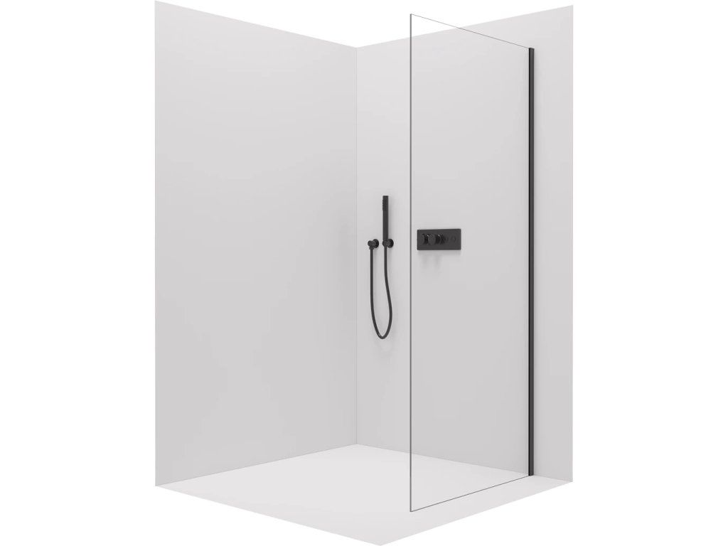 CERANO - Boční stěna Santoro L/P - černá matná, transparentní sklo - 80x195 cm