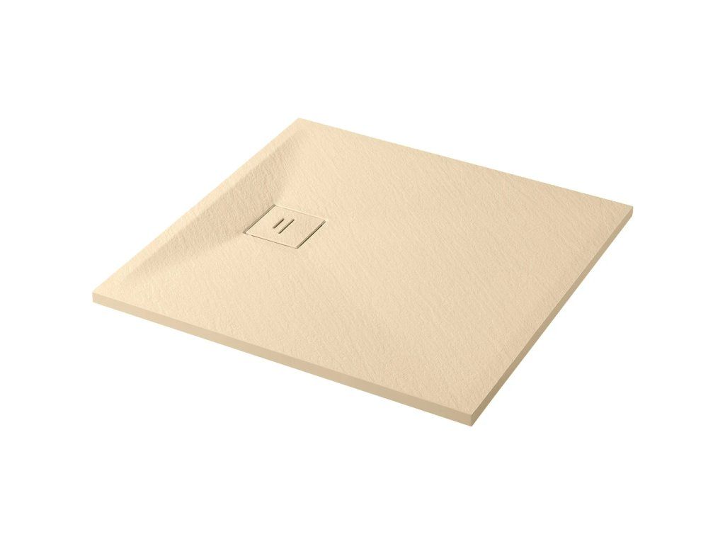 CERANO - Sprchová vanička čtvercová Pablo - SMC/minerální kompozit - strukturovaná ivory - 80x80x3 cm