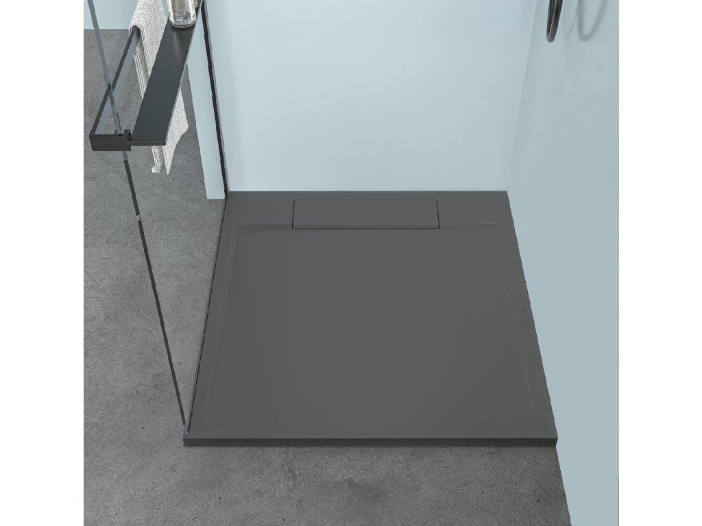 CERANO - Sprchová vanička čtvercová Loro - litý mramor - tmavě šedá - 90x90x3,5 cm