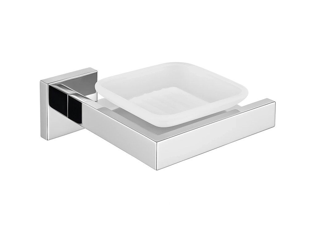 Mýdlenka se skládá z pevného držáku z nerezové oceli a čtvercové misky z tvrzeného skla, která nejen skvěle vypadá, ale také se snadno čistí. K dispozici je ve dvou barevných variantách, černá matná pro sofistikovaný vzhled nebo chrom, který dodá interiéru nadčasovou eleganci. Díky nástěnnému provedení zůstává umyvadlo vždy čisté a bez zbytečných stop po vodě či mýdle.