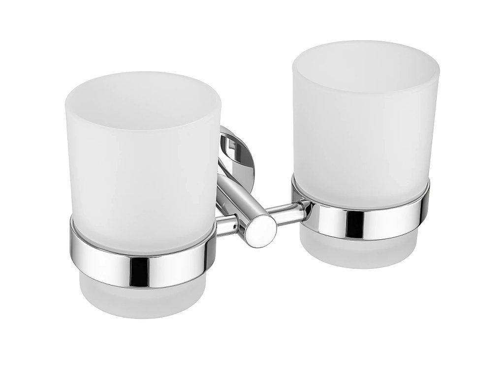 CERANO - Nástěnný držák na dvojici sklenic Lineo - chrom, mléčné sklo