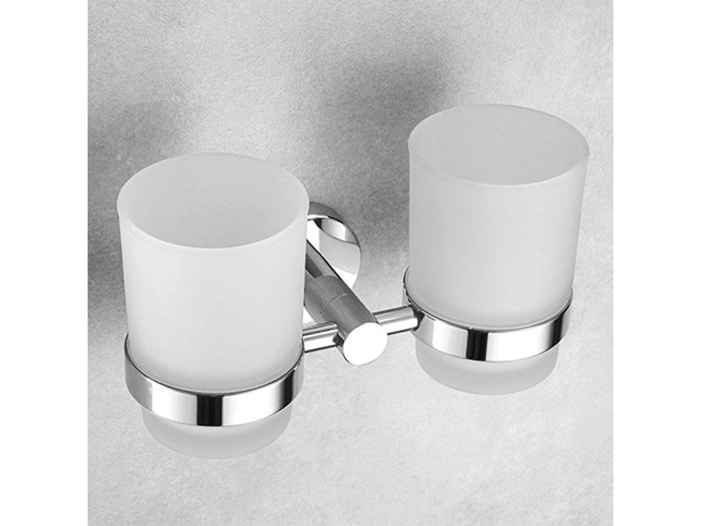 - Nástěnné držáky sklenic – možnosti pro uložení dvojice nebo jedné sklenice, ideální pro organizaci hygienických potřeb.