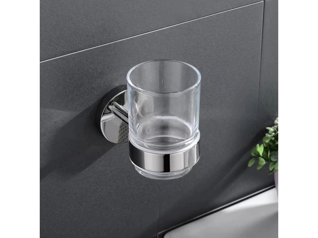 - Nástěnné držáky sklenic – možnosti pro uložení dvojice nebo jedné sklenice, ideální pro organizaci hygienických potřeb.