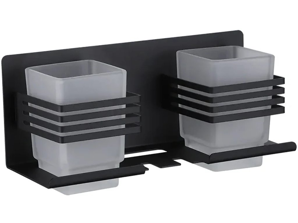 CERANO - Nástěnný/Samolepící držák na zubní kartáčky a kelímky Lero - černá