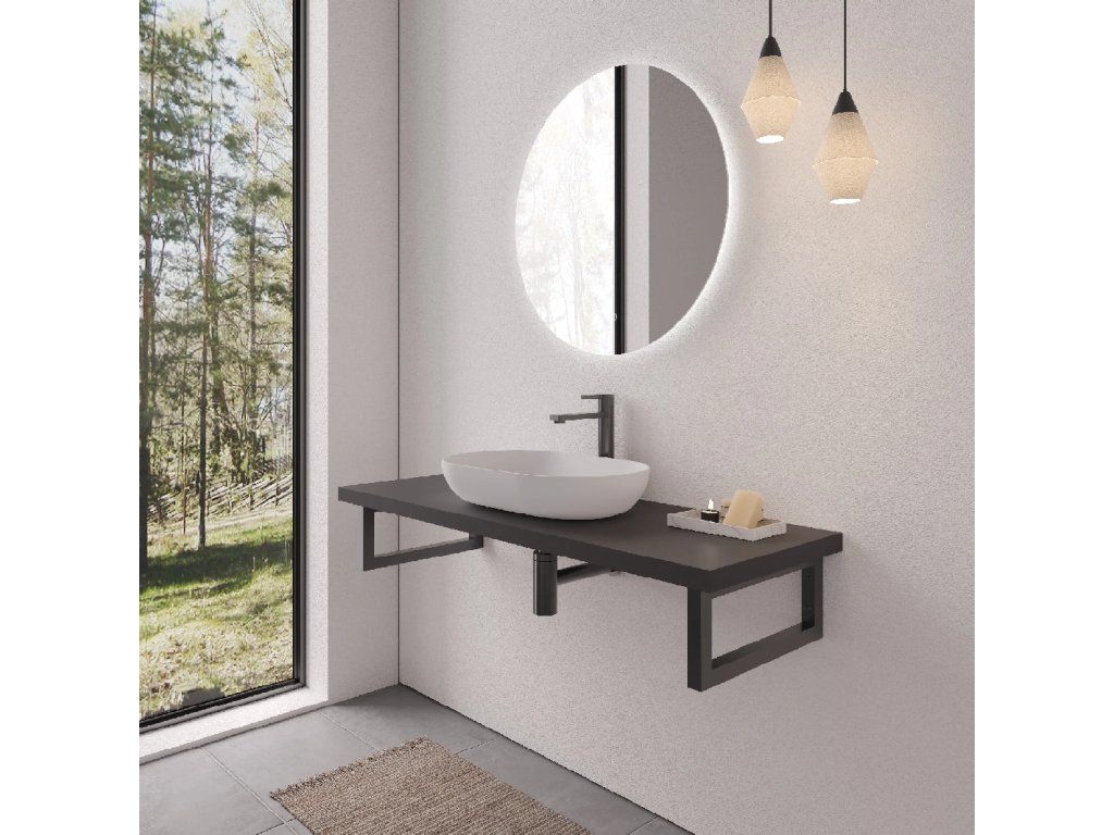 CERANO - Deska pod umyvadlo Navira Pro + 2+1 podpěrná konzole - černá matná - 160x46x3,6 cm