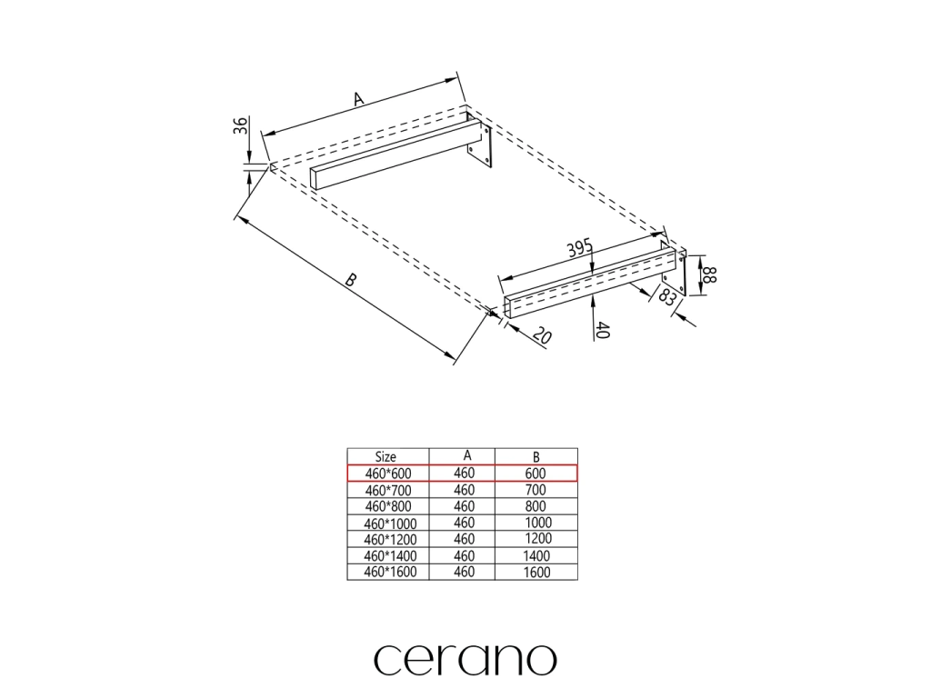 CERANO - Deska pod umyvadlo Navira Pro + 2 skryté konzole - černá matná - 60x46x3,6 cm