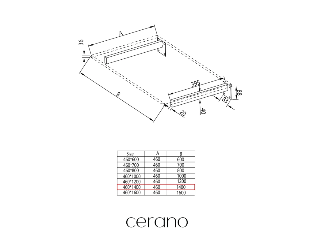 CERANO - Deska pod umyvadlo Navira Pro + 3 skryté konzole - betonově šedá - 140x46x3,6 cm