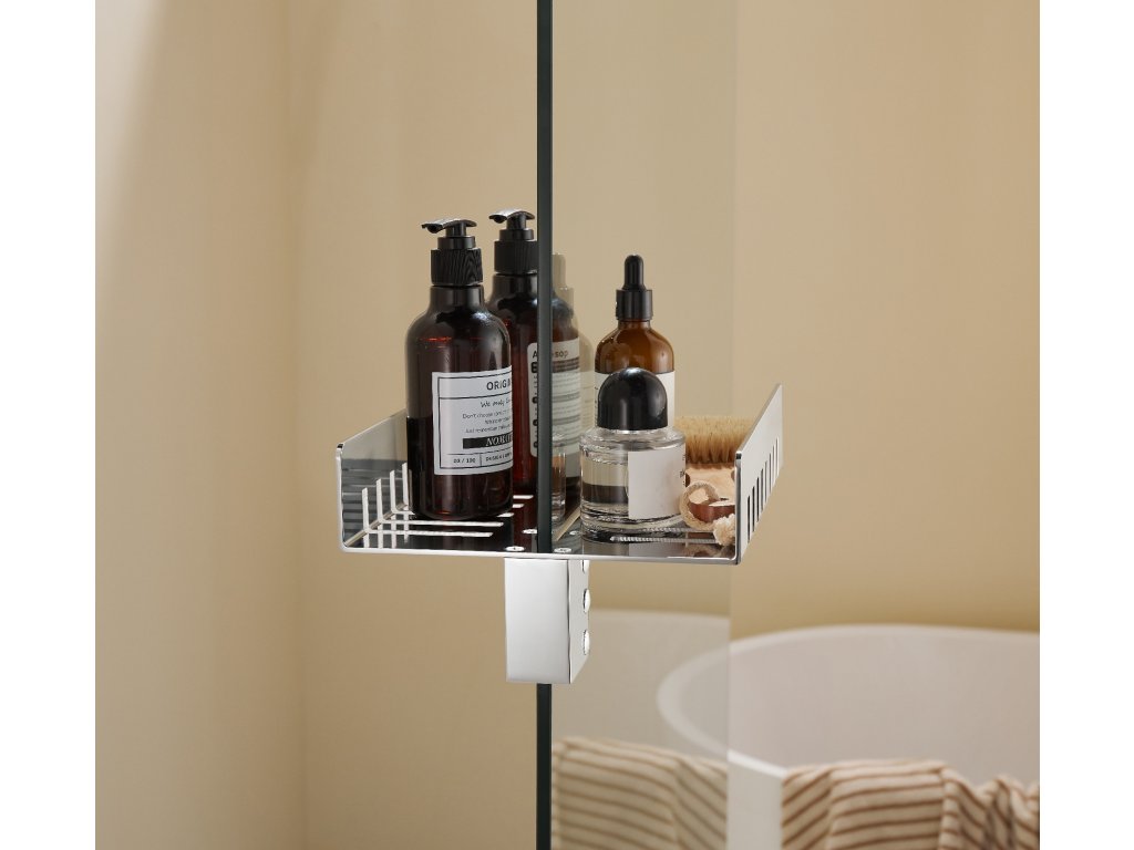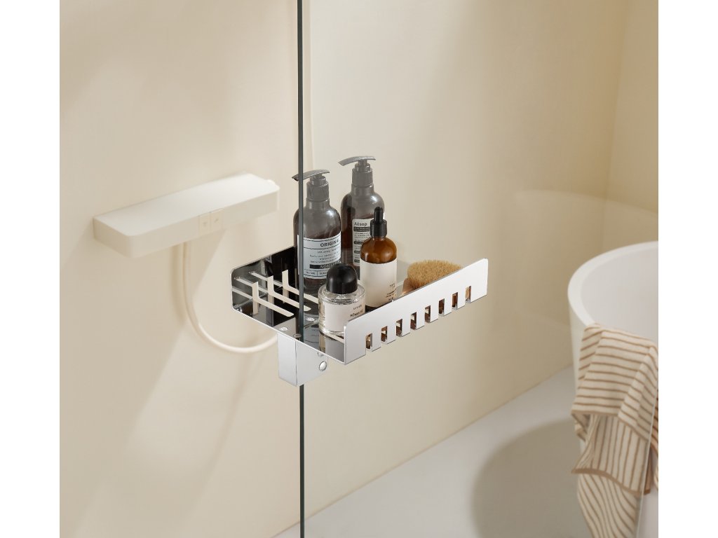 Praktický elegantní držák na ručníky zvenčí a polička zevnitř je ideální pomocník pro všechny sprchové zástěny walk-in. Lze použít pro i všechny sprchové zástěny s maximální tloušťkou skla 8mm. Je ideálním řešením minimalistických koupelen, v nichž snadno vyřeší problém s umístěním kosmetických produktů, drobného vybavení a zavěšení ručníků a osušek tak, aby vše bylo hned po ruce.