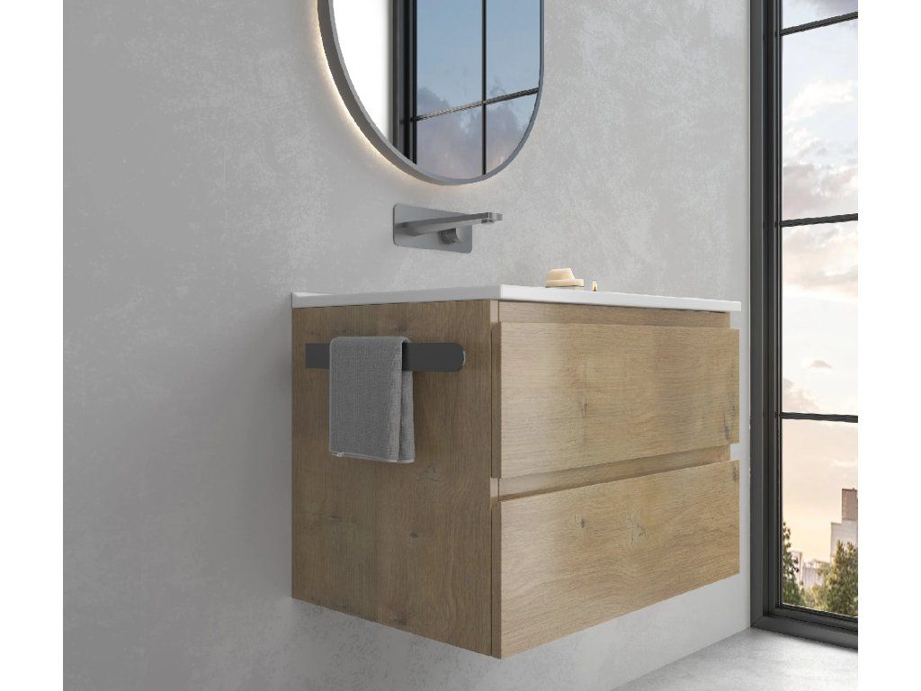Přední strana disponuje dlouhým ramenem, které slouží k umístění ručníků. Toto rameno je pevně upevněno ke stěně pomocí oboustranně lepící vložky, která je diskrétně umístěna na zadní straně kratšího ramene. Její dokonalá přilnavost k povrchu stěny zaručuje, že držák bude maximálně stabilní a unese i těžší tkaniny. Montážní komponenty jsou součástí balení.