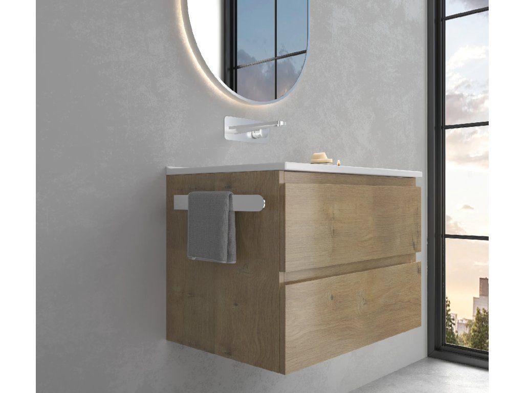 Přední strana disponuje dlouhým ramenem, které slouží k umístění ručníků. Toto rameno je pevně upevněno ke stěně pomocí oboustranně lepící vložky, která je diskrétně umístěna na zadní straně kratšího ramene. Její dokonalá přilnavost k povrchu stěny zaručuje, že držák bude maximálně stabilní a unese i těžší tkaniny. Montážní komponenty jsou součástí balení.