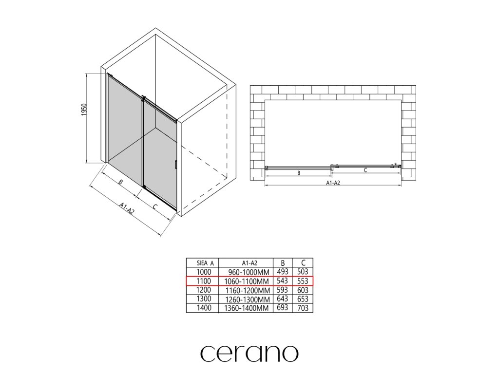V rámci této série nabízíme širokou škálu rozměrů, abychom uspokojili různé potřeby našich zákazníků. Všechny sprchové kouty, dveře a zástěny značky CERANO jsou plně kompatibilní se sprchovými vaničkami CERANO ve stejných rozměrech, což zajišťuje bezproblémovou instalaci a dokonalé sladění. Sprchový kout lze navíc instalovat flexibilně – buď na odpovídající sprchovou vaničku, nebo přímo na podlahu podle vašich preferencí a možností koupelny.