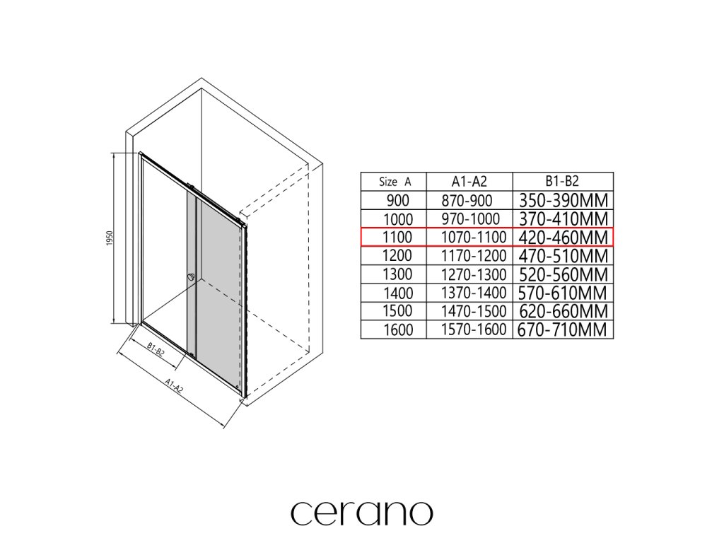 V rámci této série nabízíme širokou škálu rozměrů, abychom uspokojili různé potřeby našich zákazníků. Všechny sprchové kouty, dveře a zástěny značky CERANO jsou plně kompatibilní se sprchovými vaničkami CERANO ve stejných rozměrech, což zajišťuje bezproblémovou instalaci a dokonalé sladění. Sprchový kout lze navíc instalovat flexibilně – buď na odpovídající sprchovou vaničku, nebo přímo na podlahu podle vašich preferencí a možností koupelny.