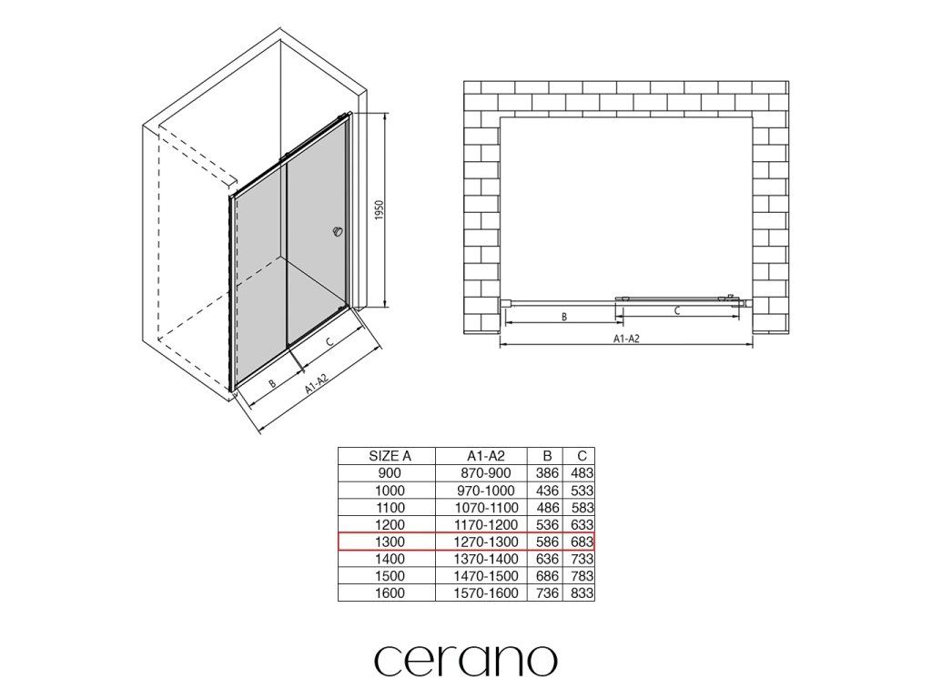 V rámci této série nabízíme širokou škálu rozměrů, abychom uspokojili různé potřeby našich zákazníků. Všechny sprchové kouty, dveře a zástěny značky CERANO jsou plně kompatibilní se sprchovými vaničkami CERANO ve stejných rozměrech, což zajišťuje bezproblémovou instalaci a dokonalé sladění. Sprchový kout lze navíc instalovat flexibilně – buď na odpovídající sprchovou vaničku, nebo přímo na podlahu podle vašich preferencí a možností koupelny.