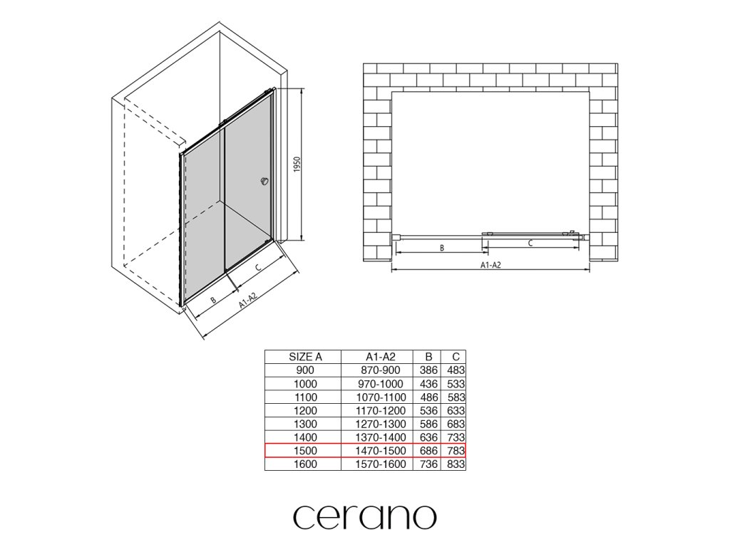 V rámci této série nabízíme širokou škálu rozměrů, abychom uspokojili různé potřeby našich zákazníků. Všechny sprchové kouty, dveře a zástěny značky CERANO jsou plně kompatibilní se sprchovými vaničkami CERANO ve stejných rozměrech, což zajišťuje bezproblémovou instalaci a dokonalé sladění. Sprchový kout lze navíc instalovat flexibilně – buď na odpovídající sprchovou vaničku, nebo přímo na podlahu podle vašich preferencí a možností koupelny.