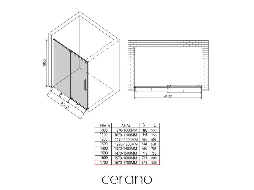 V rámci této série nabízíme širokou škálu rozměrů, abychom uspokojili různé potřeby našich zákazníků. Všechny sprchové kouty, dveře a zástěny značky CERANO jsou plně kompatibilní se sprchovými vaničkami CERANO ve stejných rozměrech, což zajišťuje bezproblémovou instalaci a dokonalé sladění. Sprchový kout lze navíc instalovat flexibilně – buď na odpovídající sprchovou vaničku, nebo přímo na podlahu podle vašich preferencí a možností koupelny.