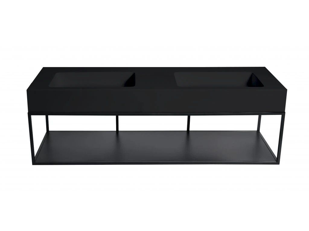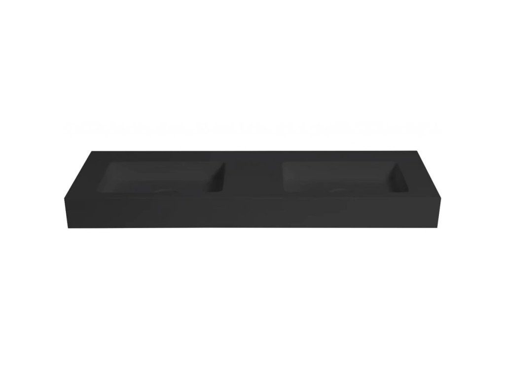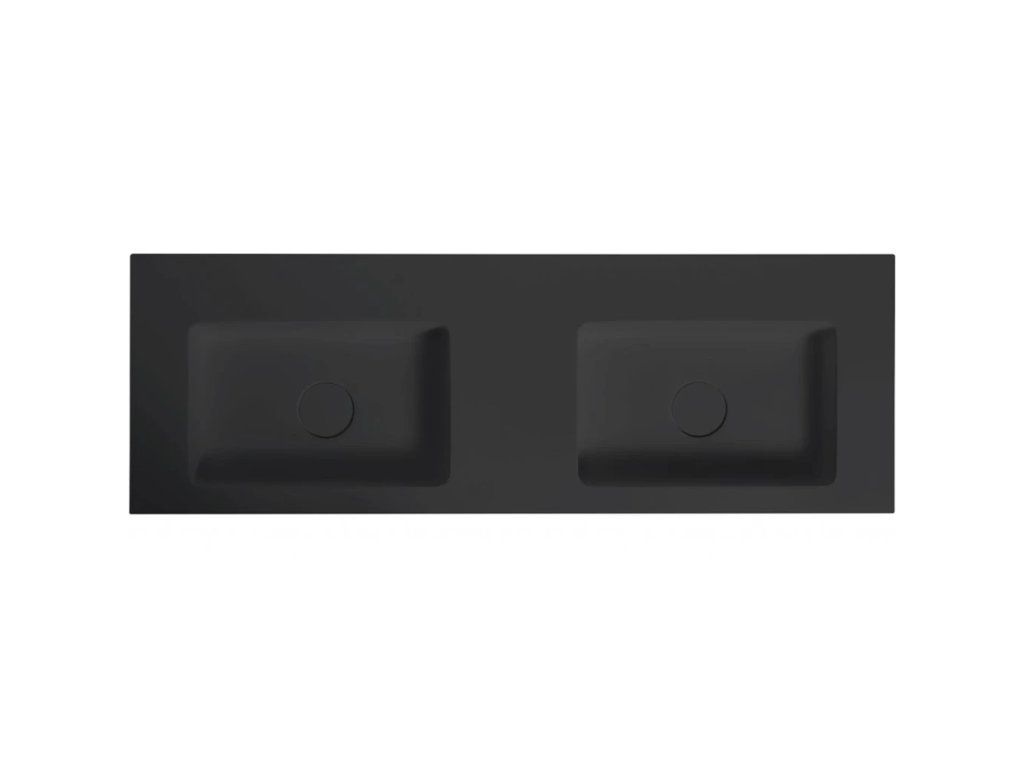 CERANO - Dvojumyvadlo z litého mramoru Geminia - nástěnné - černá matná - 133x45 cm