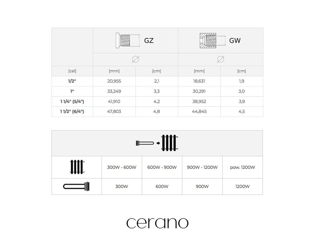 CERANO - Elektrická topná tyč s termostatem - 900W - černá lesklá