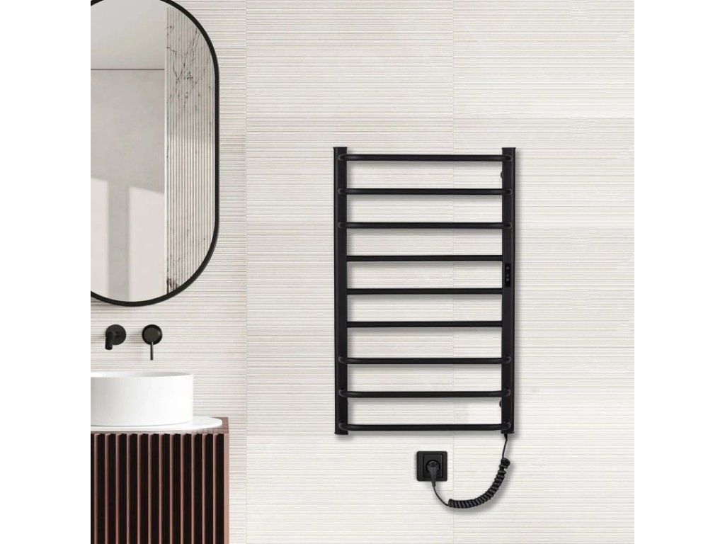CERANO - Elektrický sušák ručníků Ricardo, s displejem - 158 W -černá matná - 860x550 mm