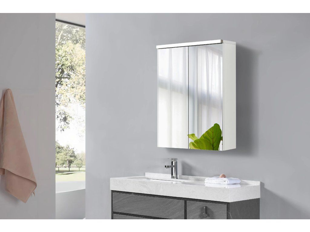 CERANO - Koupelnová zrcadlová skříňka s LED osvětlením Avia - bílá matná - 55x70x16,5 cm