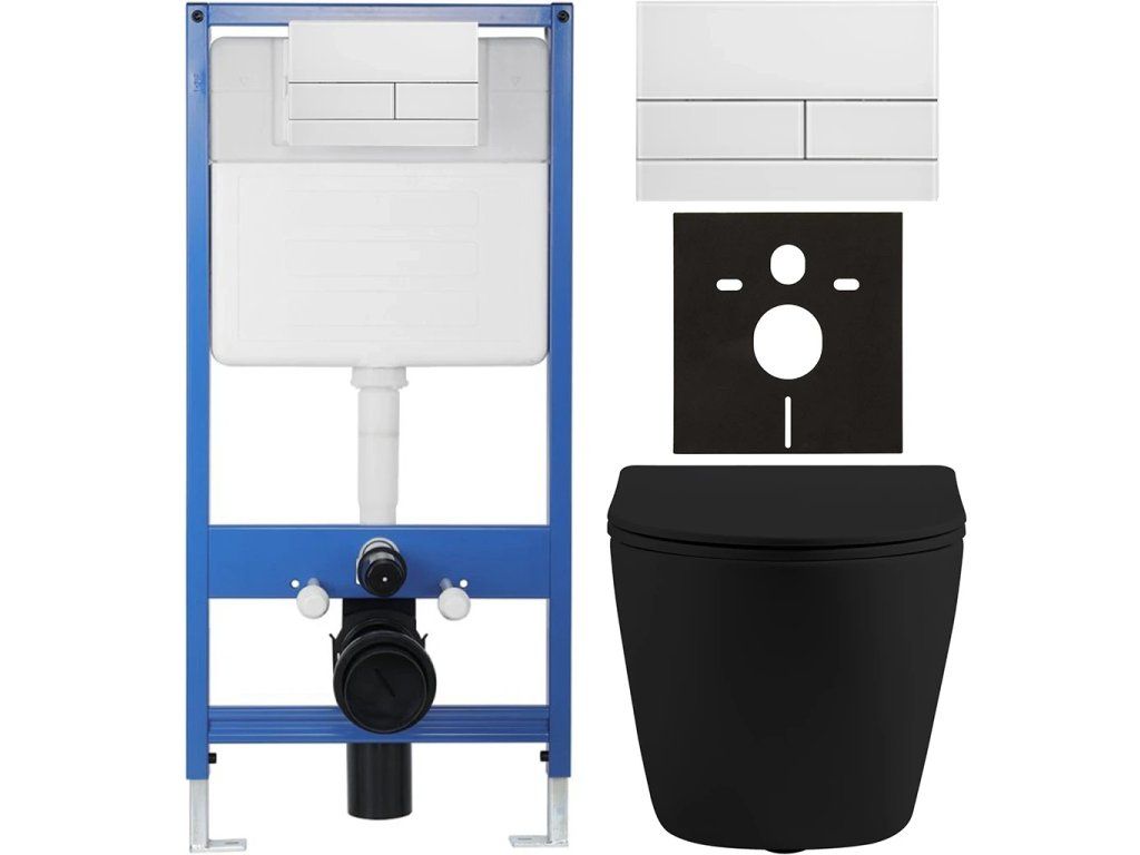 CERANO - Kompletní podomítkový WC set Lite/Cesso - černá matná - WC tlačítko Line, bílá - předstěnová instalace - 49x36 cm