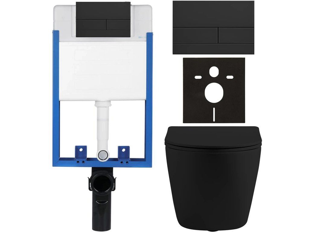 CERANO - Kompletní podomítkový WC set Lite/Cesso - černá matná - WC tlačítko Line, černá matná - k zazdění - 49x36 cm