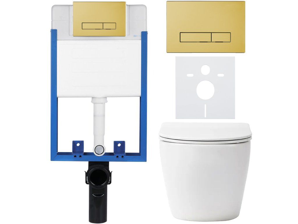 CERANO - Kompletní podomítkový WC set Lite/Verde - bílá lesklá - WC tlačítko Slim, zlatá - k zazdění - 49x36 cm