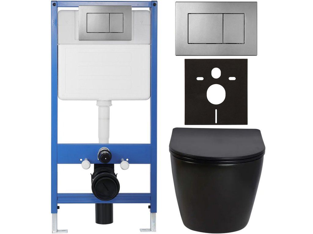 CERANO - Kompletní podomítkový WC set Lite/Verde - černá lesklá - WC tlačítko Classic, tmavě šedá - předstěnová instalace/sádrokarton - 49x36 cm
