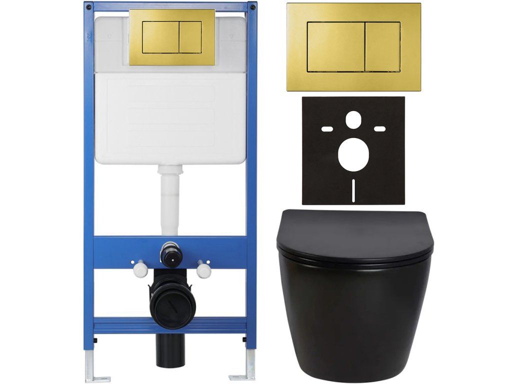 CERANO - Kompletní podomítkový WC set Lite/Verde - černá lesklá - WC tlačítko Classic, zlatá - předstěnová instalace/sádrokarton - 49x36 cm
