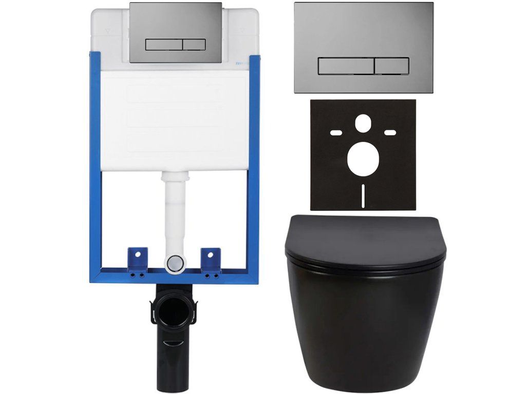CERANO - Kompletní podomítkový WC set Lite/Verde - černá lesklá - WC tlačítko Slim, tmavě šedá - k zazdění - 49x36 cm