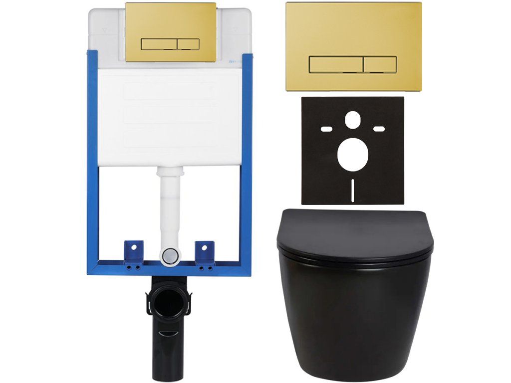 CERANO - Kompletní podomítkový WC set Lite/Verde - černá lesklá - WC tlačítko Slim, zlatá - k zazdění - 49x36 cm