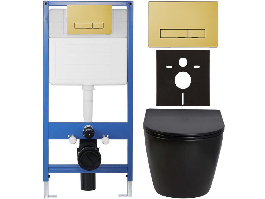 CERANO - Kompletní podomítkový WC set Lite/Verde - černá lesklá - WC tlačítko Slim, zlatá - předstěnová instalace/sádrokarton - 49x36 cm