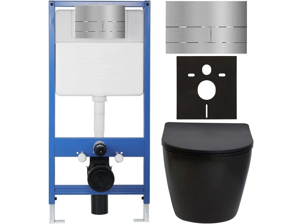 CERANO - Kompletní podomítkový WC set Lite/Verde - černá matná - WC tlačítko Line, nerez - předstěnová instalace - 49x36 cm