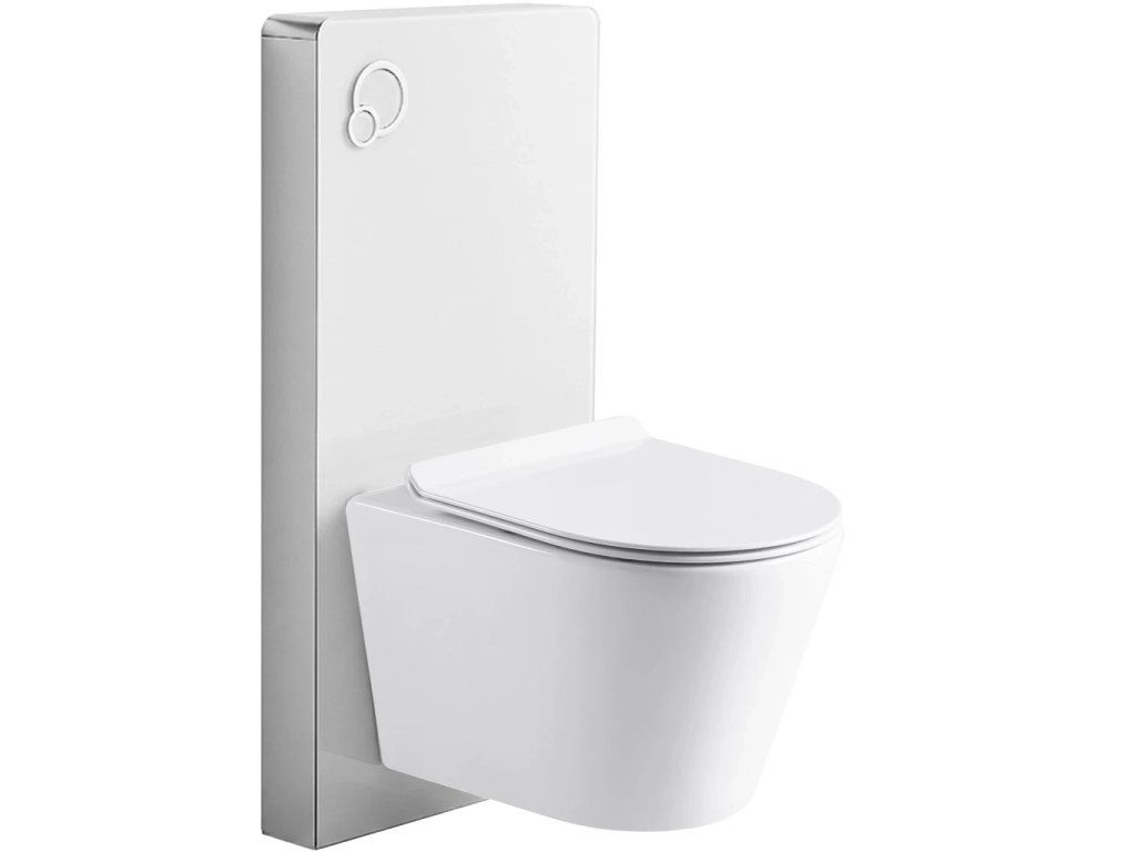 CERANO - Kompletní WC set sanitární splach. modul - bílá matná+ WC závěsné Norbi, Rimless + Slim/UF sedátko - bílá lesklá - 48,5x36,5 cm