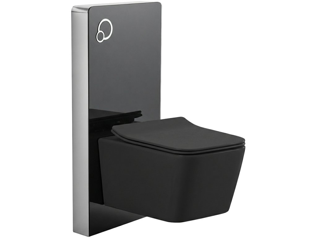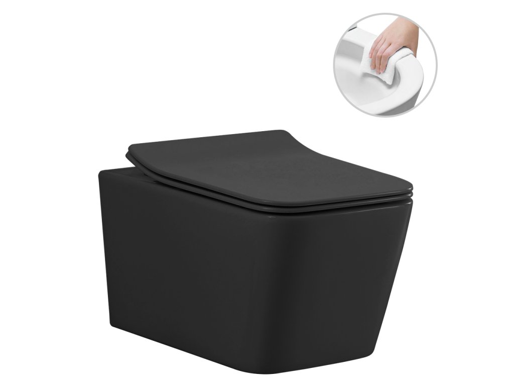 CERANO - Kompletní WC set sanitární splach. modul - černá matná + WC závěsné Forte, Rimless + Slim/UF sedátko - černá matná - 51x36 cm
