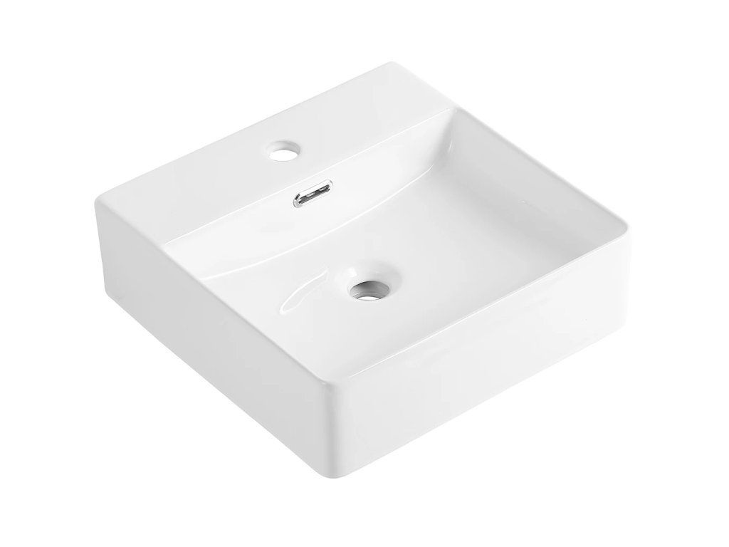 CERANO - Umyvadlo keramické - nástěnné i na desku - Peno - bílá lesklá - 42x42,5 cm