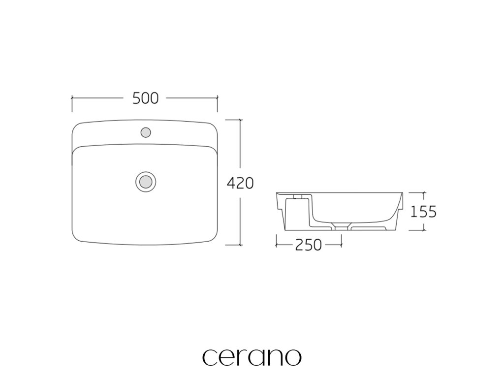 CERANO - Umyvadlo keramické - polozápustné i na desku - Nera - bílá lesklá - 50x42 cm
