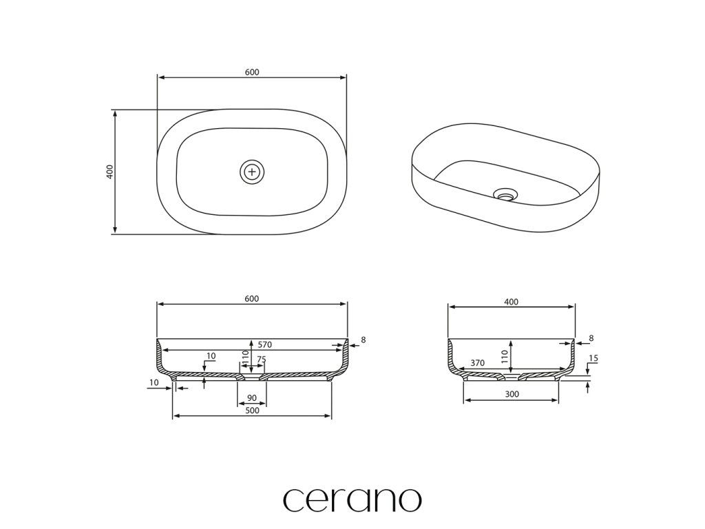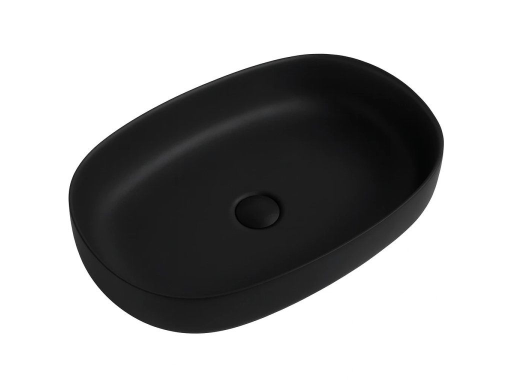 CERANO - Umyvadlo z litého mramoru Atria - na desku - černá matná - 60x40 cm