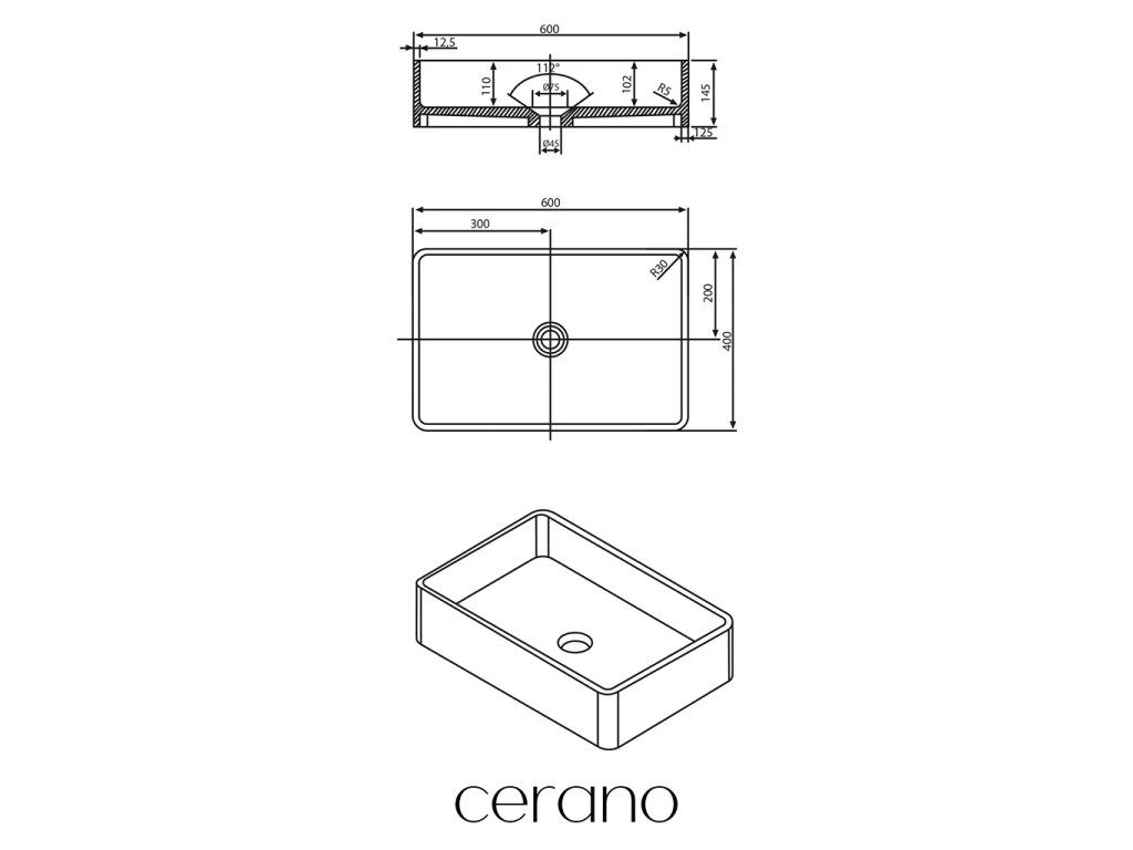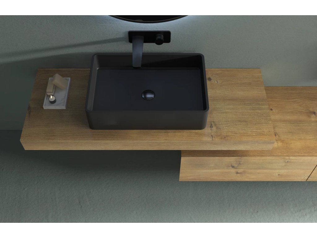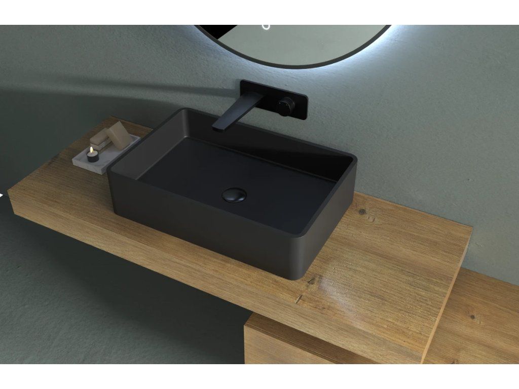 CERANO - Umyvadlo z litého mramoru Lacerta - na desku - černá matná - 60x40 cm