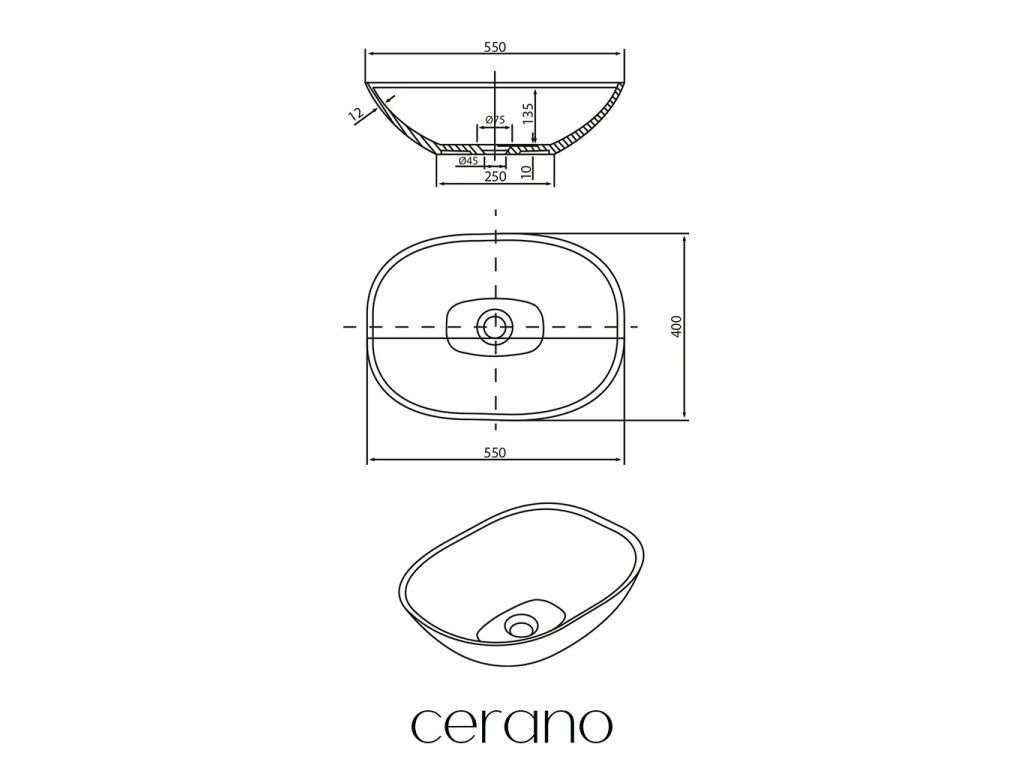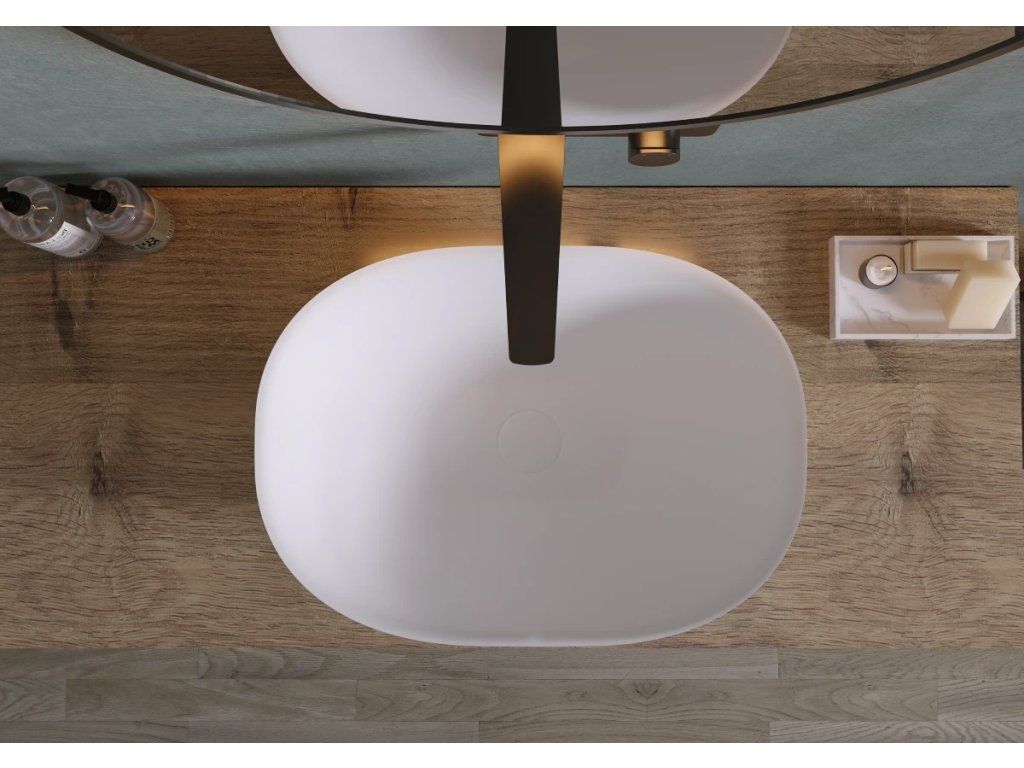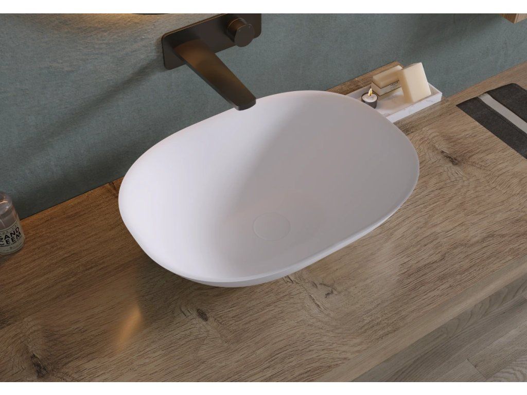CERANO - Umyvadlo z litého mramoru Libra - na desku - bílá matná - 55x40 cm