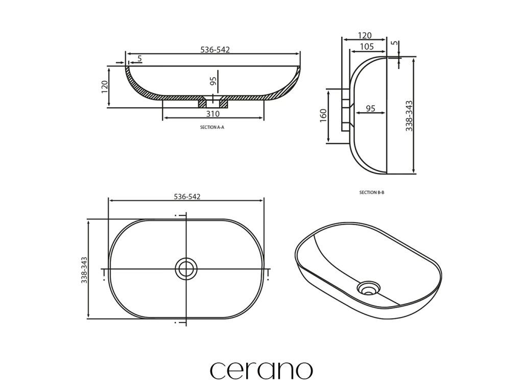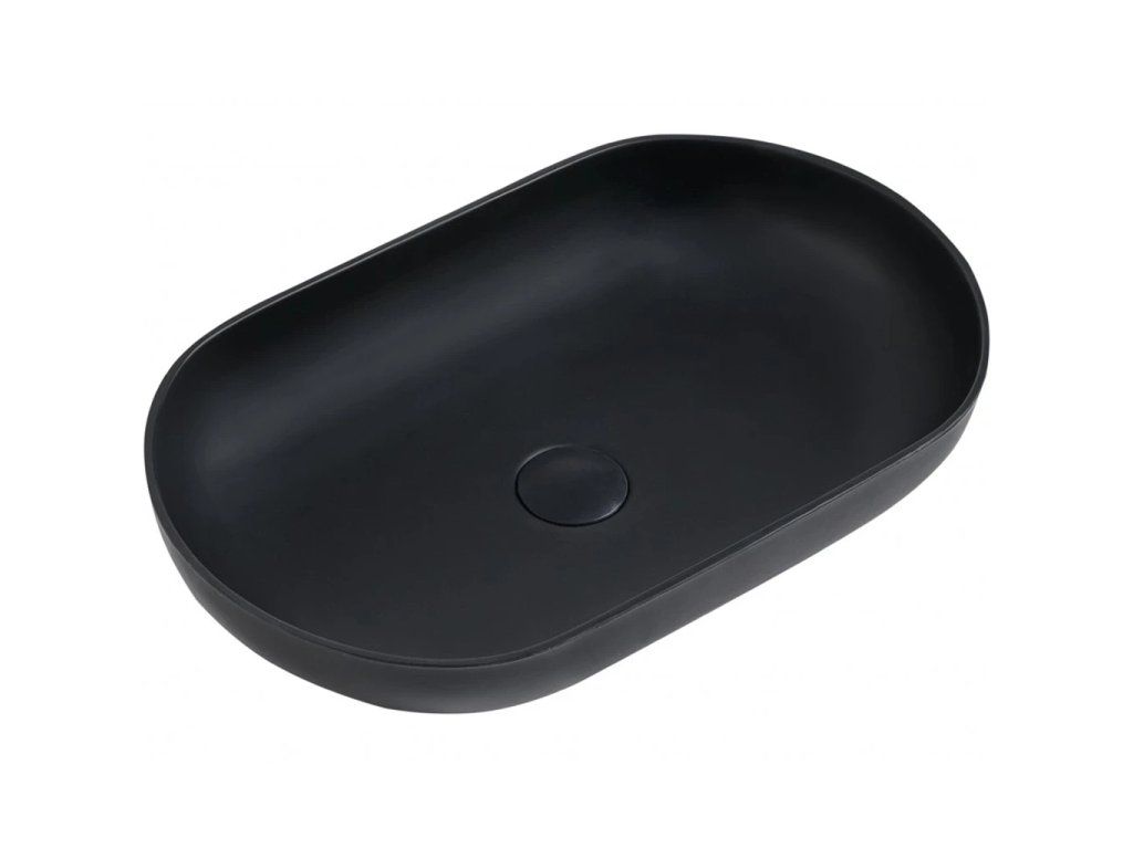 CERANO - Umyvadlo z litého mramoru Lyra - na desku - černá matná - 54x34 cm