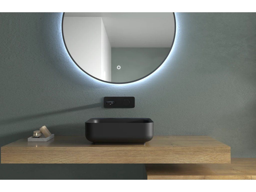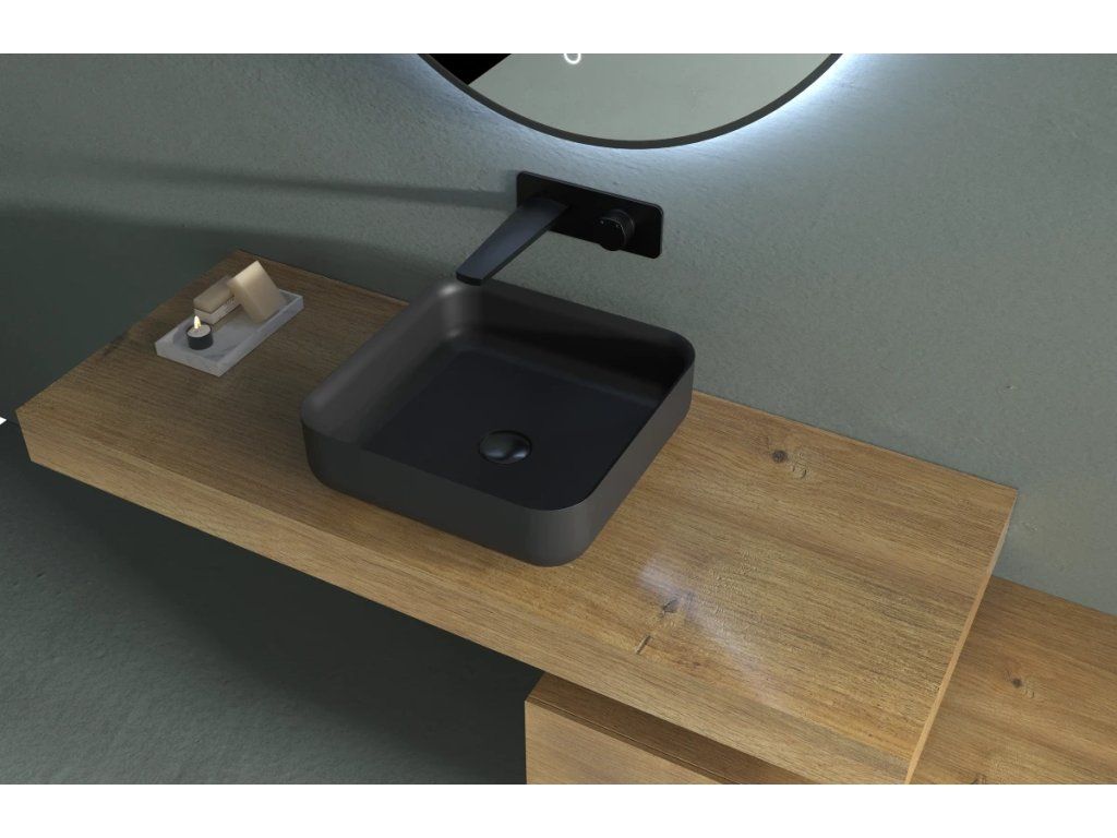 CERANO - Umyvadlo z litého mramoru Viva - na desku - černá matná - 40x40 cm