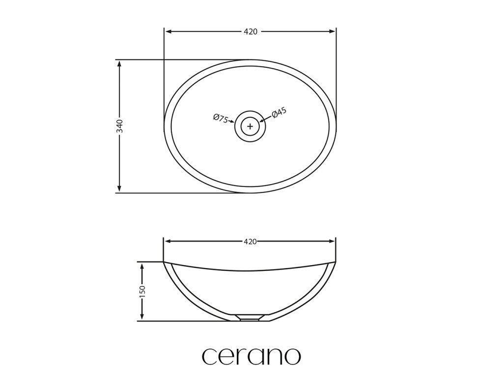 CERANO - Umyvadlo z litého mramoru Zara - na desku - bílá matná - 42x34 cm
