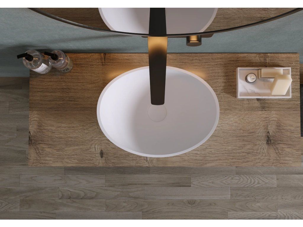 Matný povrch umyvadel světlo neodráží a tak poskytuje klidnější a uvolněnější atmosféru, což dává nenápadný, ale elegantní design. Tento povrch je praktický, protože na něm nejsou tak viditelné otisky prstů a vodní skvrny a následná údržba a udržování čistoty je tak mnohem snažší.